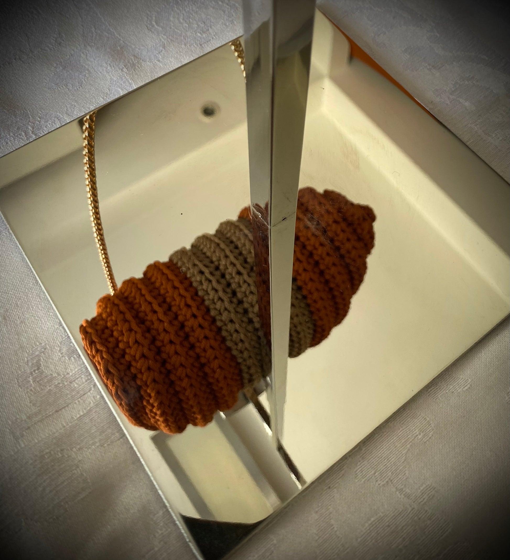 Soft structure with a richly textured, voluminous stitch pattern, entirely handmade.