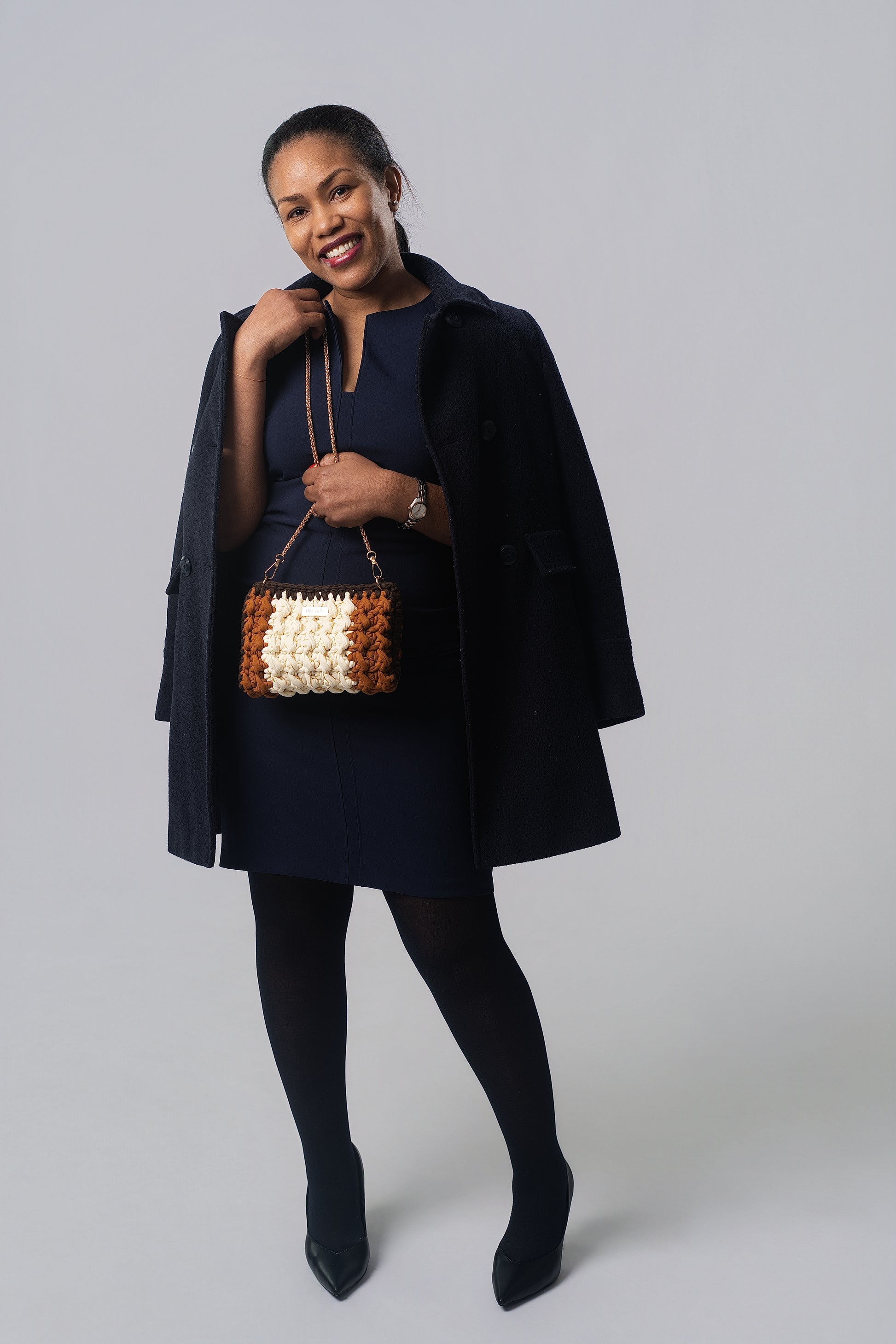 Is a handmade crochet bag with a structured silhouette and warm autumn tones.